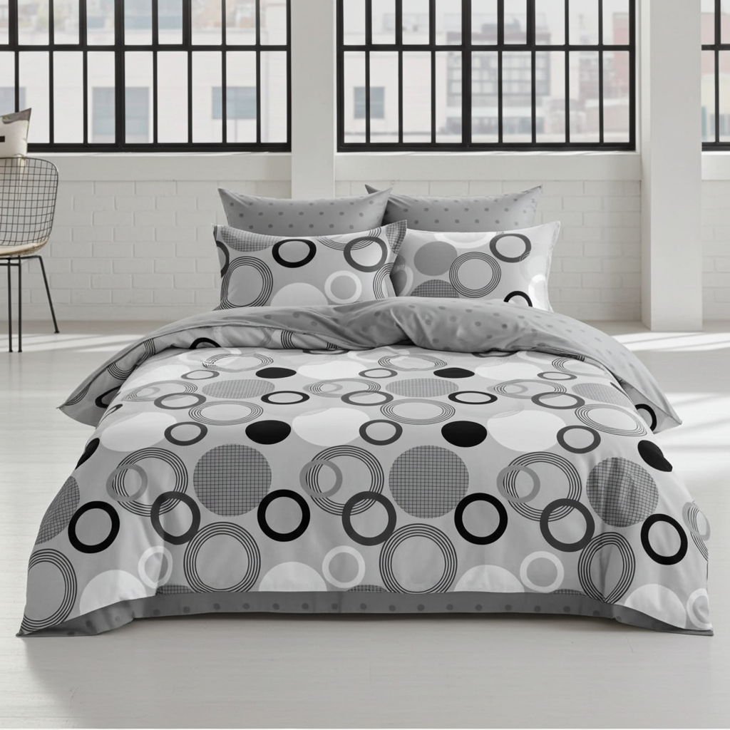 Lenjerie Pat Zia Sx076, Bumbac, 6 Piese, Cu Elastic, Gri, Imprimeu