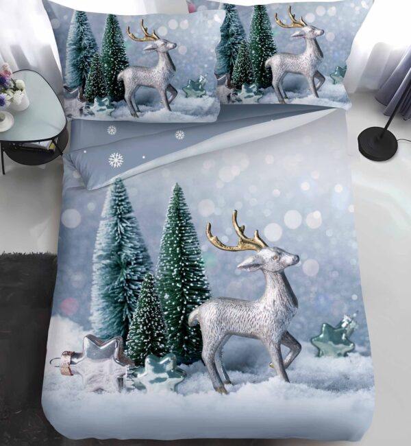 Transformă-ți dormitorul într-o poveste de Crăciun cu Lenjerie pat de Craciun o persoana 4 piese HoHoHome CR072. Fabricată din Bumbac de calitate, lenjeria în 4 piese adaugă căldură și eleganță fiecărei seri de iarnă.