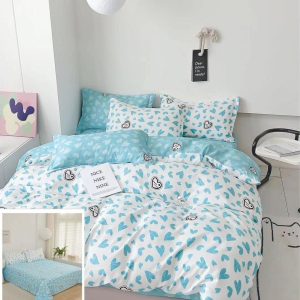Lenjerie Pat Lia Sf083, Bumbac, 4 Piese, Fara Elastic, Albastru