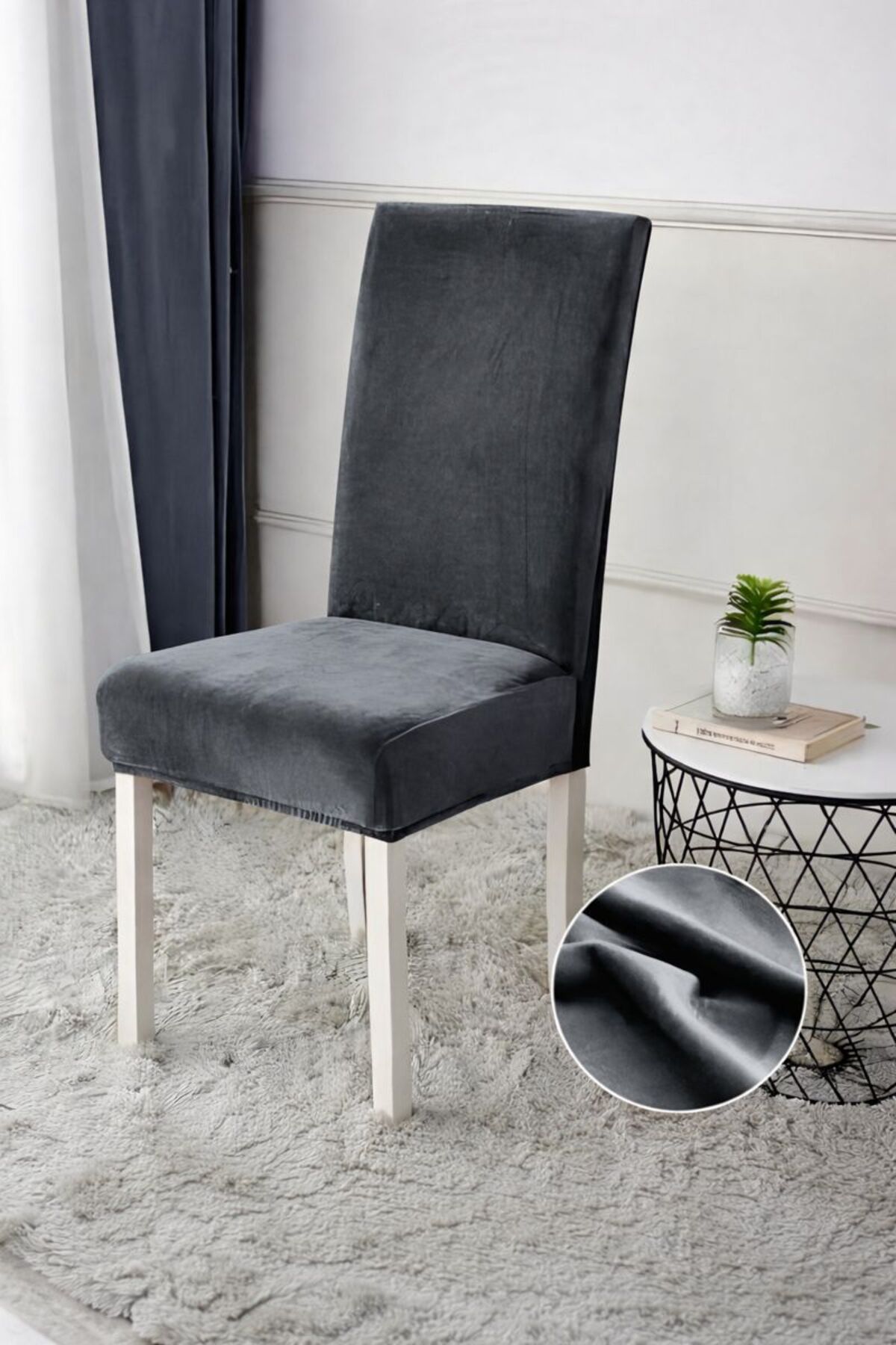 Reîmprospătează aspectul întregii zone de dining cu acest set de 4 huse elastice pentru scaune, realizate din material catifelat, plăcut la atingere.; Setul este ideal pentru protejarea și uniformizarea scaunelor, oferind un aspect elegant și ordonat, potrivit atât pentru locuință, cât și pentru spații comerciale sau evenimente.; Materialul elastic se mulează perfect pe spătar și șezut, asigurând o acoperire completă și o fixare fermă, fără alunecare.; Husele maschează eficient urmele de uzură, petele sau diferențele dintre scaune, transformând rapid mobilierul fără investiții costisitoare.; Ușor de montat și de întreținut, husele sunt o soluție practică pentru protecția zilnică a scaunelor împotriva murdăriei, prafului și zgârieturilor, menținând un aspect îngrijit pe termen lung.; Conținut pachet: – 4 × huse pentru scaun Recomandat pentru: – dining, living, bucătărie – restaurante, săli de evenimente, hoteluri – recondiționarea rapidă a scaunelor